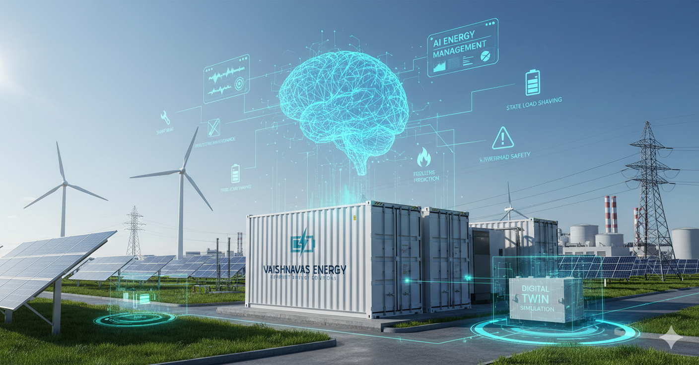 AI also enables the development of Digital Twin models — virtual replicas of real-world Battery Energy Storage Systems deployed by Vaishnavas Energy.